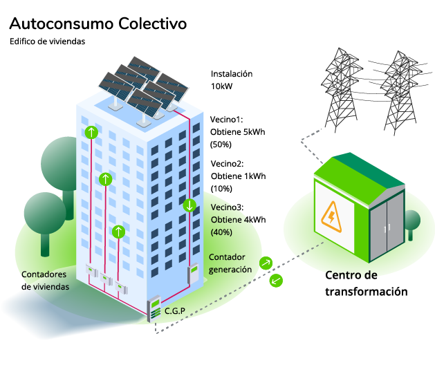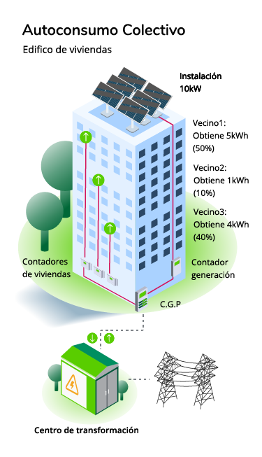 Un consumidor participa en el autoconsumo colectivo cuando forma parte de un grupo de consumidores que comparten y autoconsumen la energía eléctrica que proviene de instalaciones de producción cercanas a sus viviendas con las que tienen un previo acuerdo.